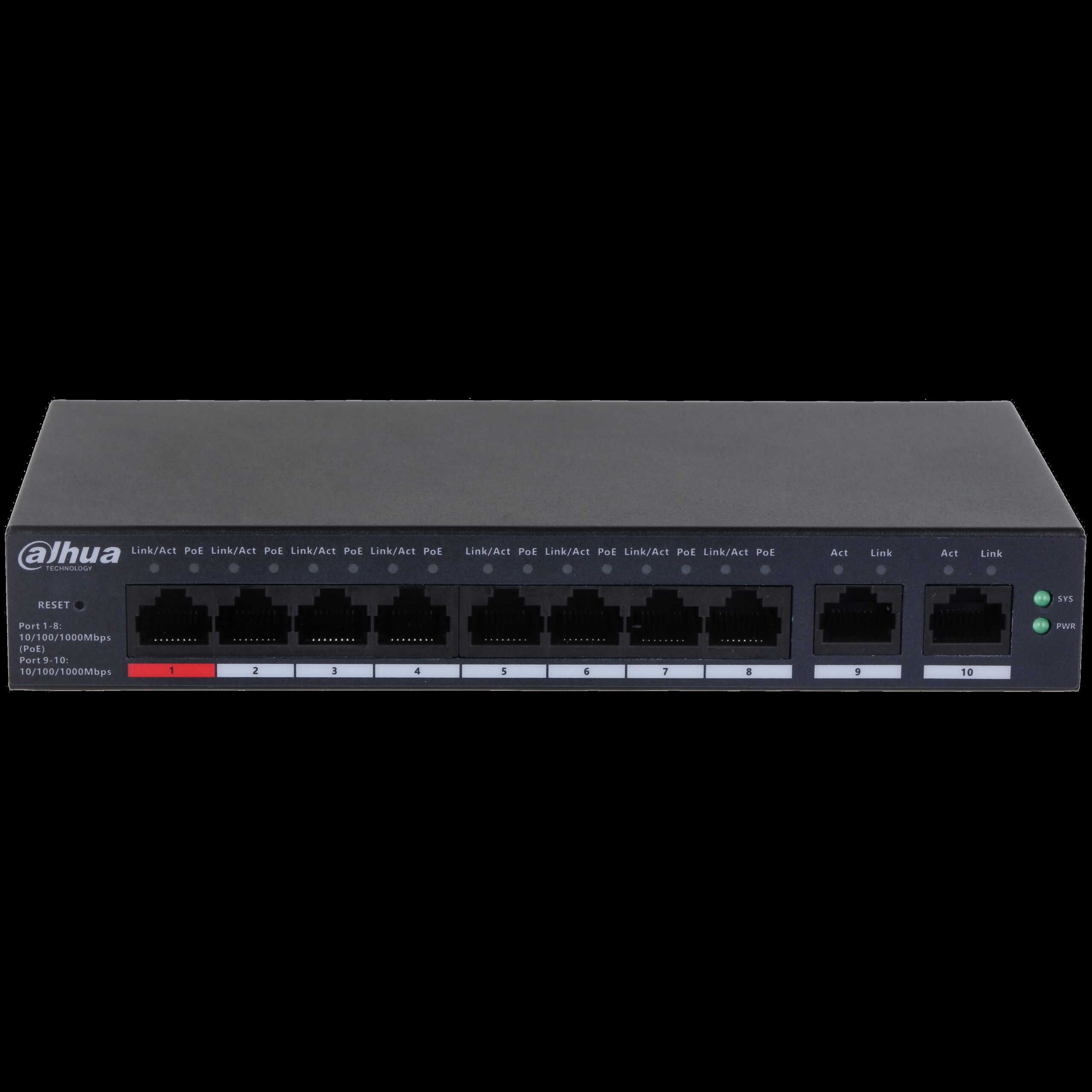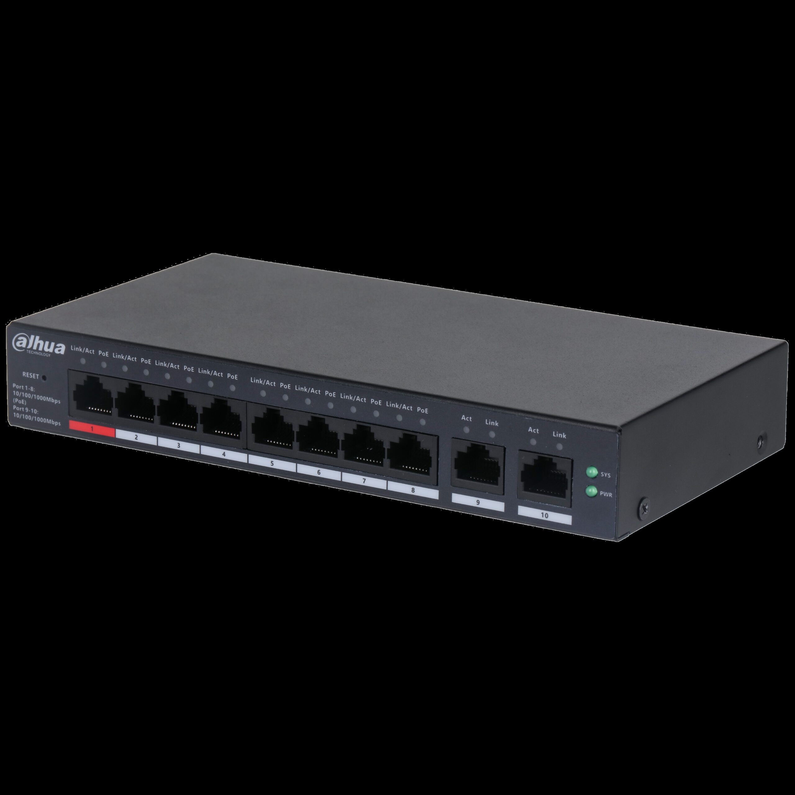 Dahua conmutador gigabit 10 puertos con 8 puertos PoE -DH-CS4010-8GT-110- 1.0.01.20.11244-9002