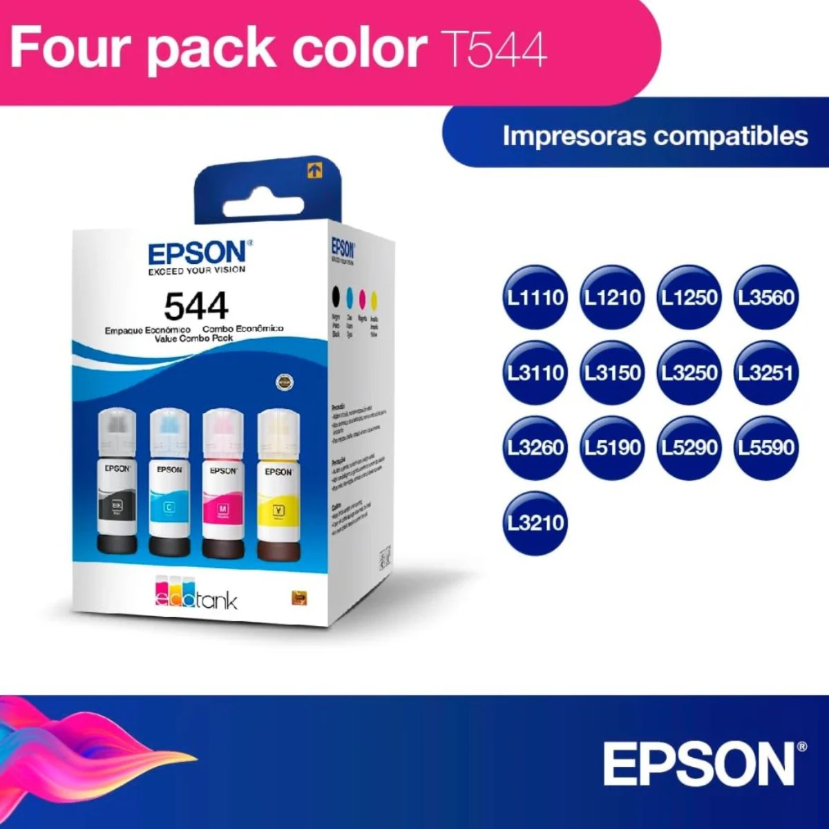 Epson botella de tinta T544 pack completo 4 Colores negro cian magenta y amarillo – T544520-4P